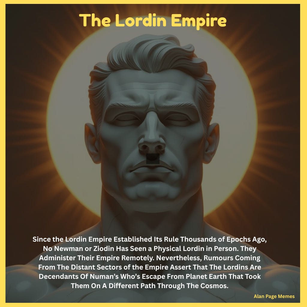 The Ziodin’s believe Planet Dirt has always been theirs by divine right, their ancient myths proclaiming it was promised to them 3,000 Epocks ago; they view the Newman’s as settlers who have stolen their Dirt. Conflicts between the two have flared in the past, yet under the Lordin Empire’s rule offering extraordinarily favourable terms to all, peaceful coexistence has prevailed for thousands of epocks. The Ziodin’s exists as planet Dirt’s accountants (as been their craft).