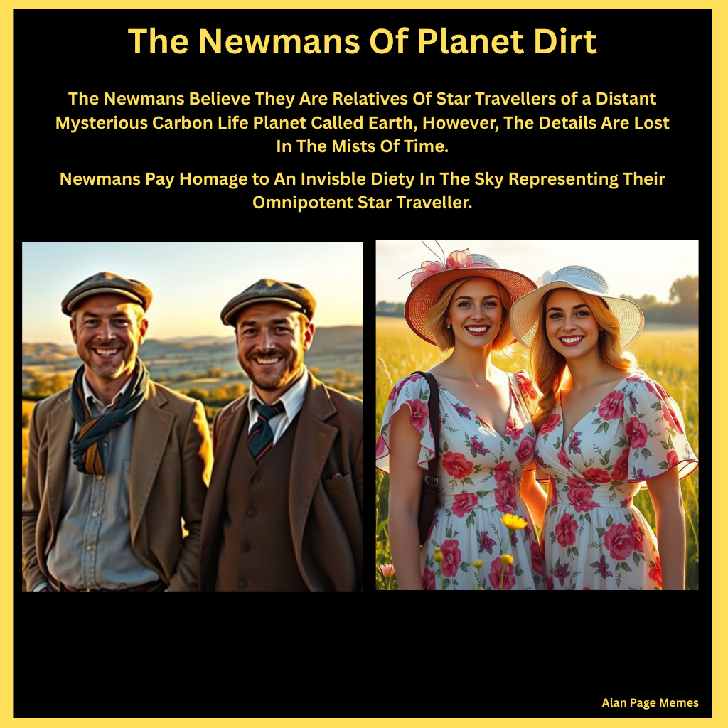 All three populations have no concrete idea how they came to exist on Planet Dirt. The Newman’s believe they are relatives of star traveller’s of a distant unknown carbon life planet called Earth, where they were only 8% of the population, It had the same bio-Atmosphere as planet Dirt, however, the details of the truth are lost in the mists of space time.
